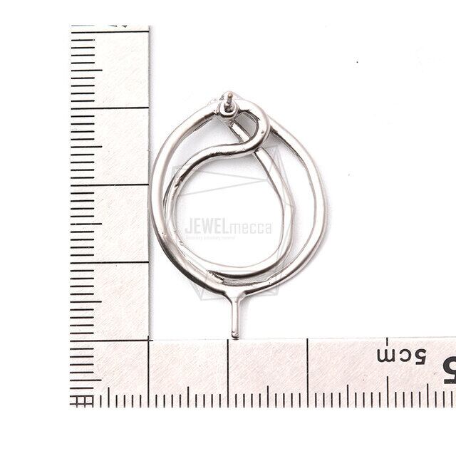 ERG-1147-MR/2PCS/Double Round Post Earrings/23mm X 32mm/Matte Rhodium Plated Over Tin, Titanium post