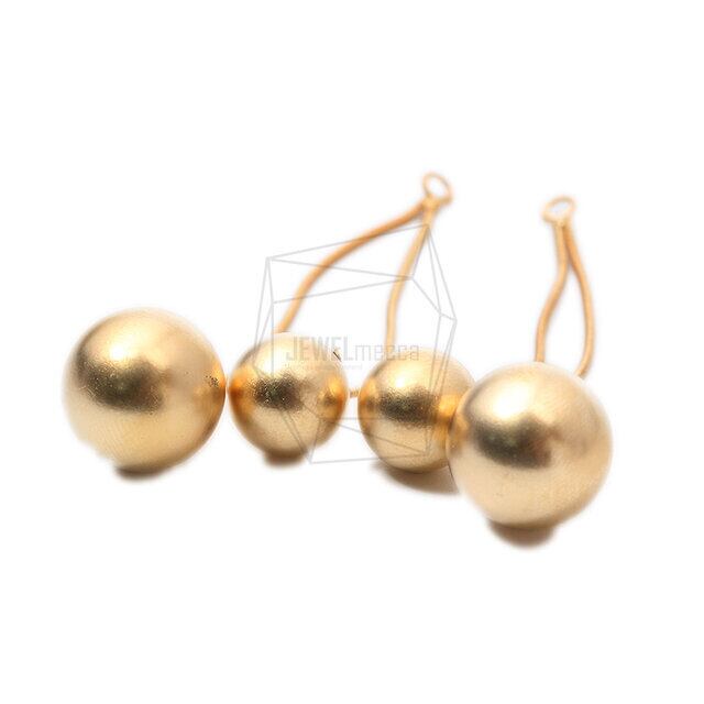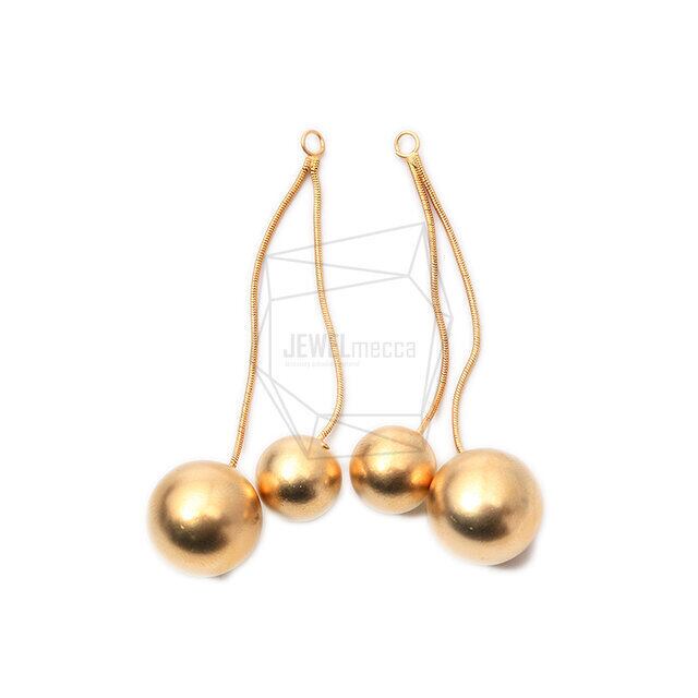 ERG-1150-MG/2PCS/Double Ball Earring Charm /28mm x 70mm/Matte Gold Plated over Brass