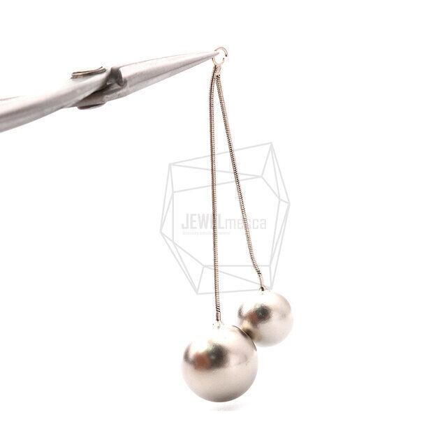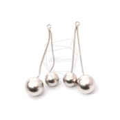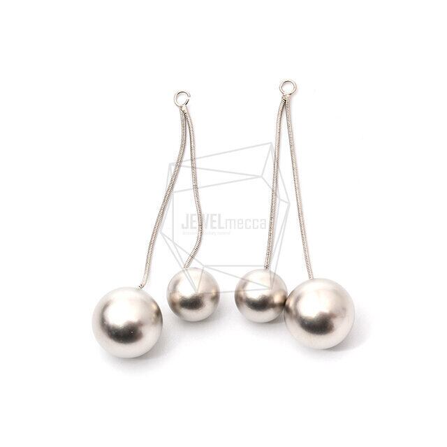 ERG-1150-MR/2PCS/Double Ball Earring Charm/28mm x 70mm/Matte Rhodium Plated over Brass