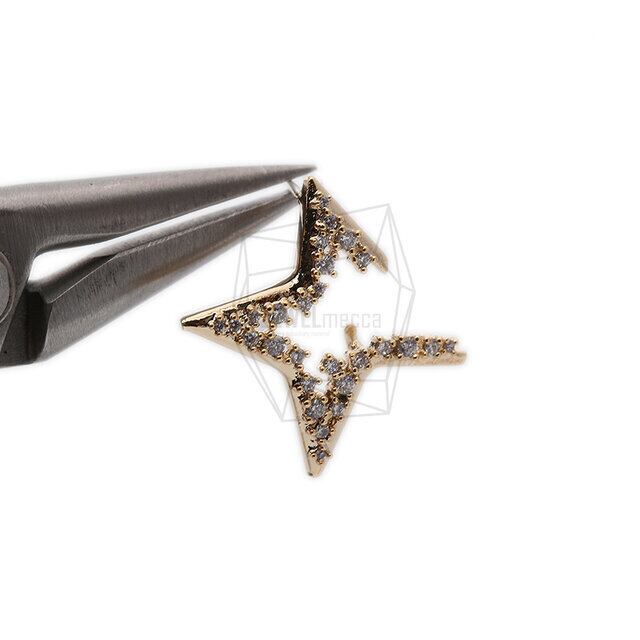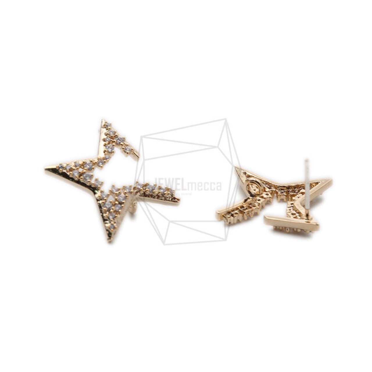 ERG-1152-G/2PCS/Cubic Outline Star Post Earring/19mm x 19mm/Gold Plated over Brass/silver post,CZ