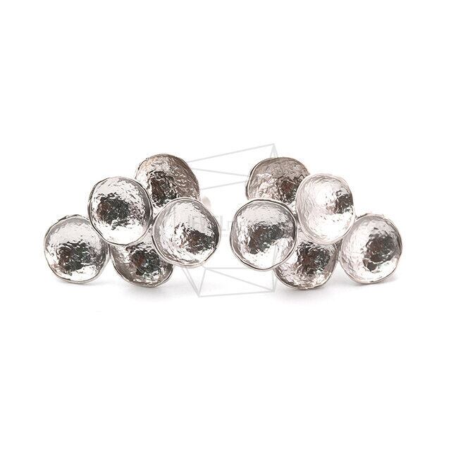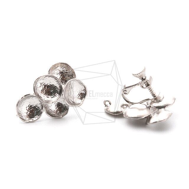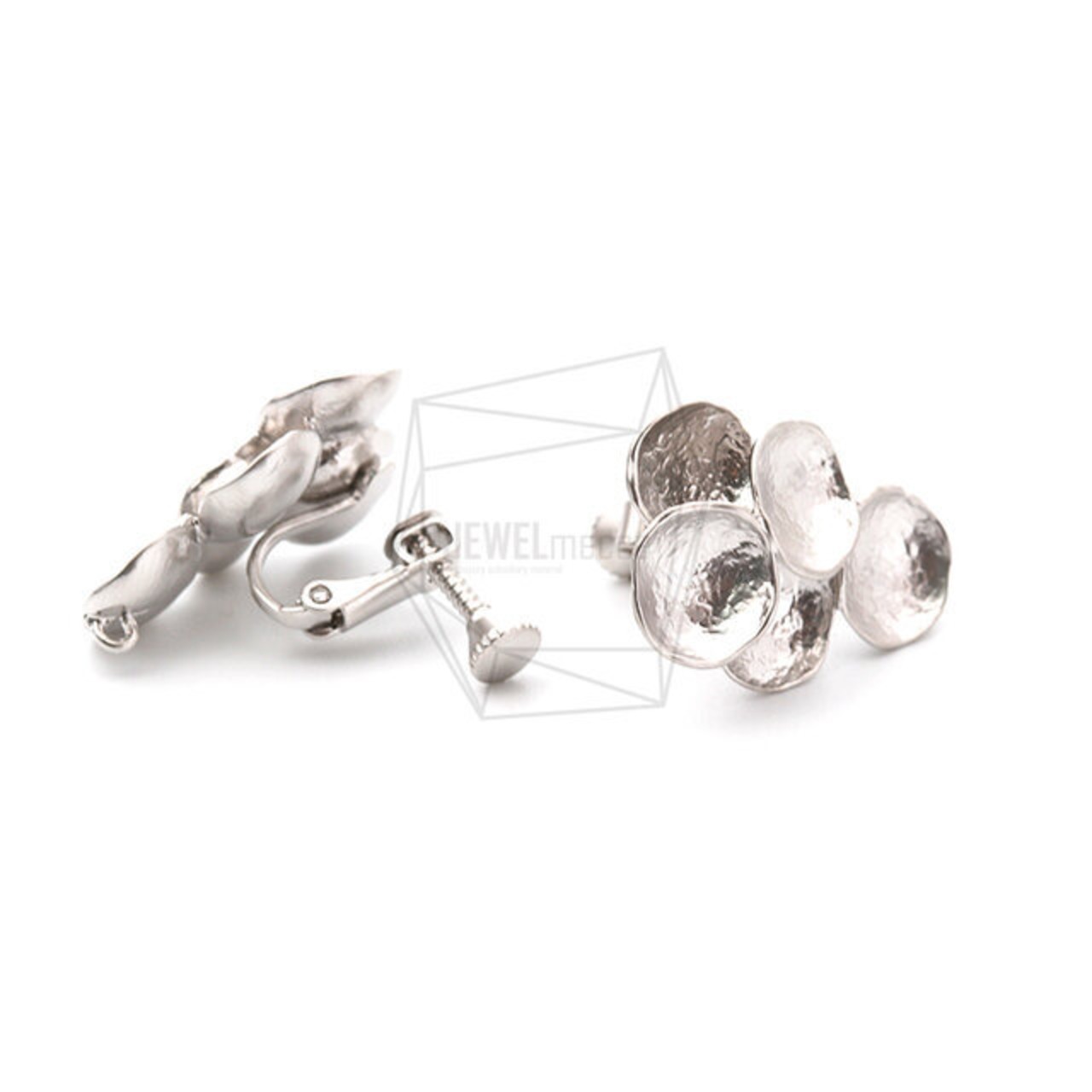 ERG-1153-MR/2Pcs-Multi Round Textured Circle Non Pierced Screw Back Clips Earring/15mm x 25mm /Matte Rhodium Plated over Brass