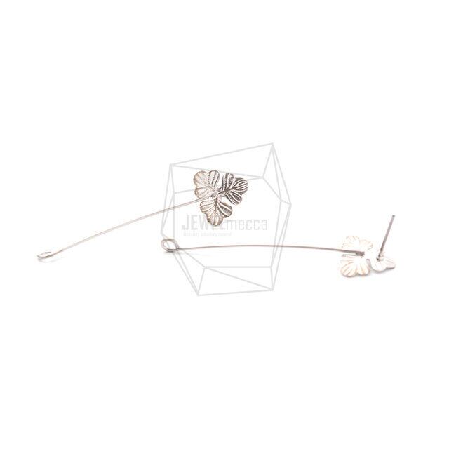 ERG-1154-MR/2PCS/Long leaves Post Earrings/11mm X 46mm/Matte Rhodium Plated Over Brass,Titanium post