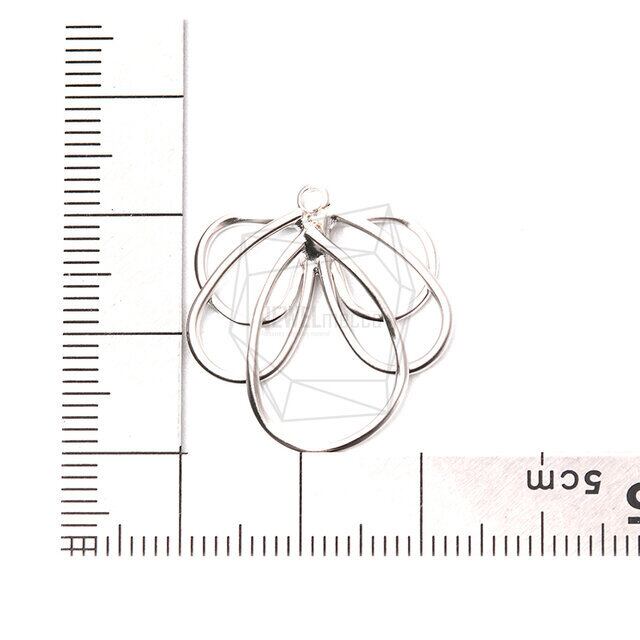 PDT-1893-MR/2Pcs-Teardrop Fan Pendant / 23mmx23mm /Matte Rhodium Plated over brass