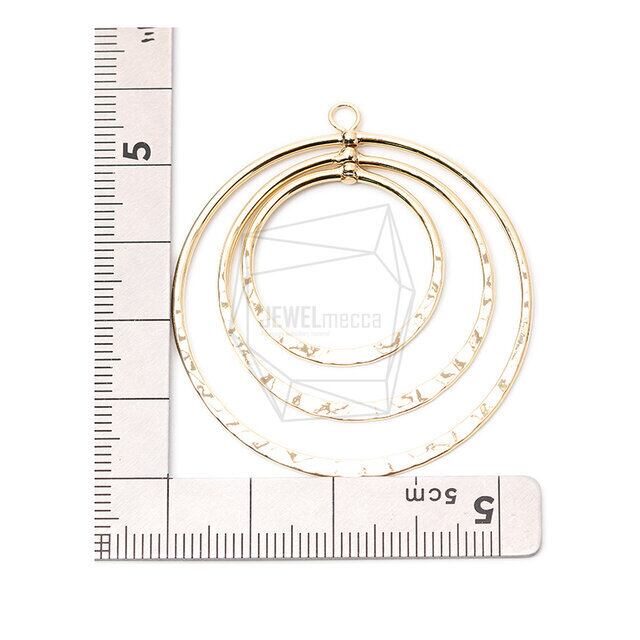 PDT-1898-G/2PCS/Triple Circles Hammered Texture Pendant/45mm X 50mm/Gold Plated Over Brass