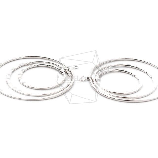 PDT-1898-R/2PCS/Triple Circles Hammered Texture Pendant/45mm X 50mm/Rhodium Plated Over Brass