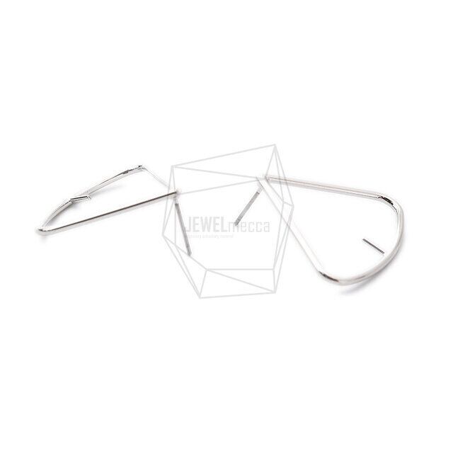ERG-1170-R/2PCS/sector form Post Earring/28mm X 29mm/Rhodium Plated Over Brass,Stainless Post