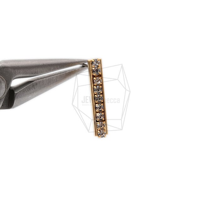 ERG-1174-MG/2Pcs-Cubic Zirconia Setting Bar Earring Post/ 4mm x 20mm/Matte Gold Plated over brass,Titanium post