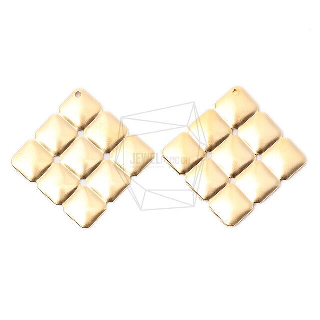 PDT-2166-MG/2PCS/honeycomb Pendant /32mm x 32mm/Matte Gold Plated Over Brass