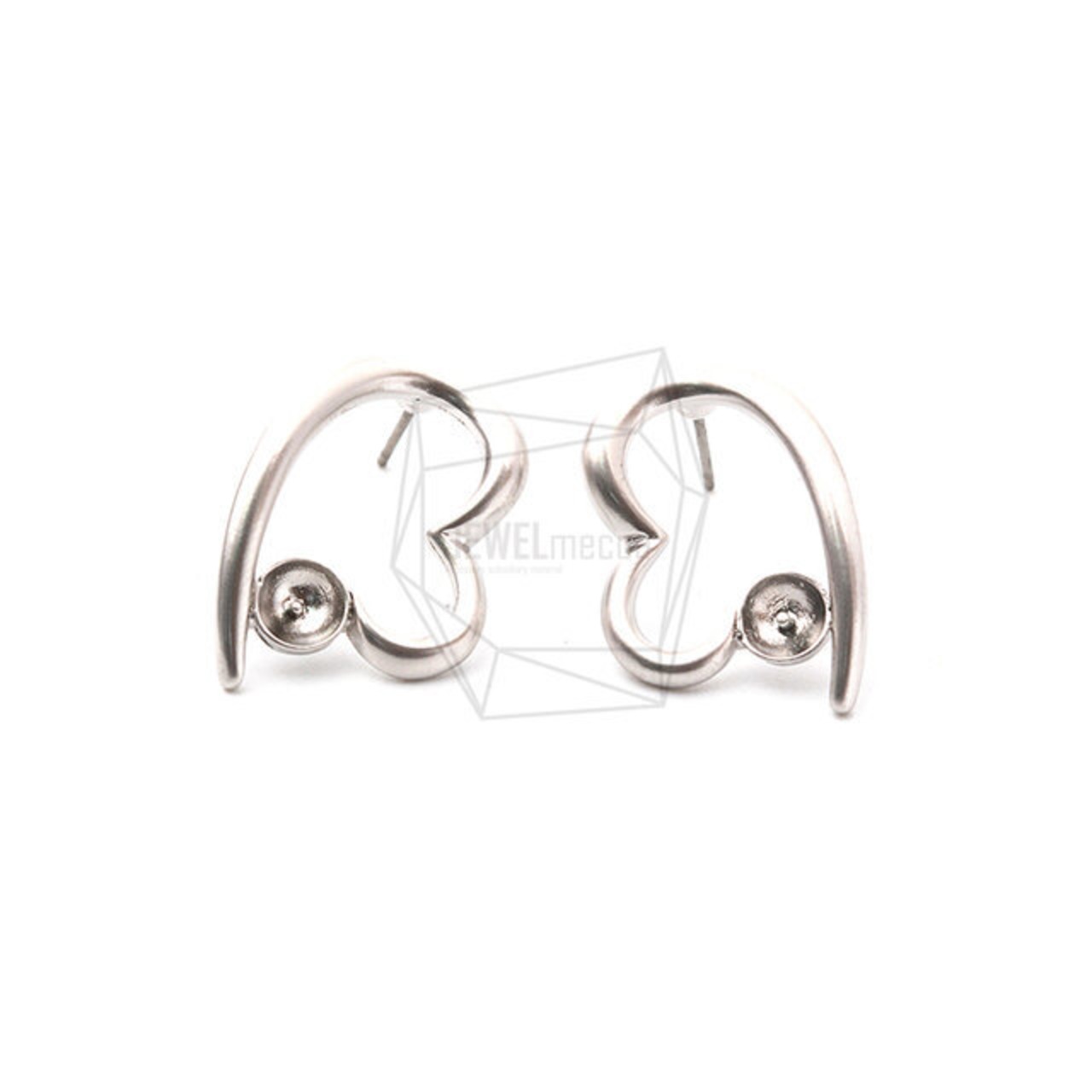 ERG-1183-MR/2PCS/Heart Post Earring/18mm x 24mm/Matte Rhodium Plated Over Tin,Titanium post