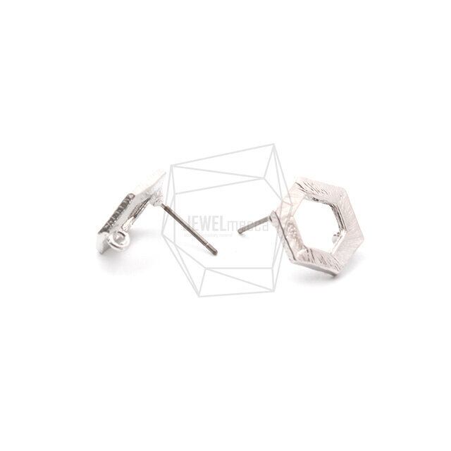 ERG-1184-MR/2PCS/Pentagon Post Earring/13mm x 13mm/Matte Rhodium Plated Over Tin,Titanium post