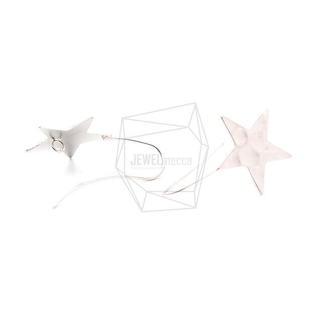 ERG-1187-MR/2PCS/Star Hook Earring/Star Earwire/ 20mm x 32mm/Matte Rhodium Plated over Brass
