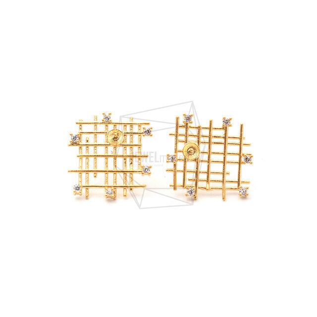 ERG-1189-MG/2Pcs-Cubic Zirconia Setting honeycomb Post Earring/ 18mm x 18mm /Matte Gold Plated over Brass/925 sterling silver post
