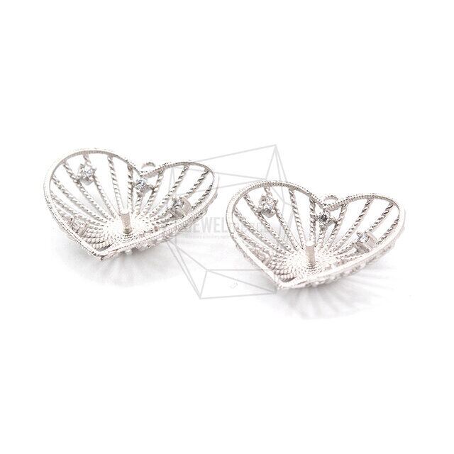 PDT-2168-MR/2PCS/Cubic Zirconia Settings Heart Pendant/20mm X 28mm/Matte Rhodium Plated over Brass,CZ