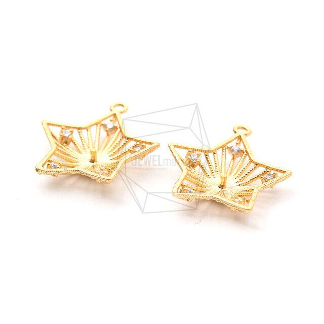 PDT-2169-MG/2PCS/Cubic Zirconia Settings Star Pendant/18mm X 20mm/Matte Gold Plated over Brass,CZ