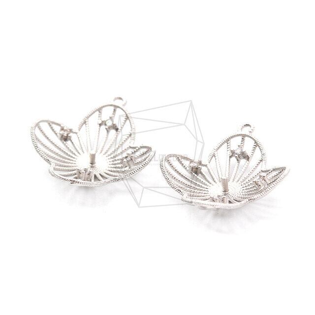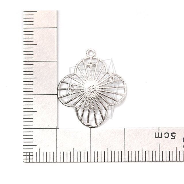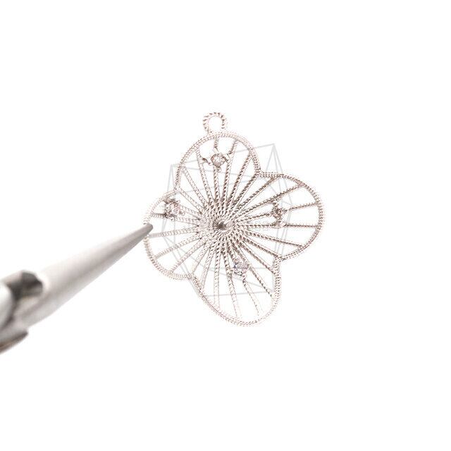 PDT-2170-MR/2PCS/Cubic Zirconia Settings Four Leaf Clover Pendant/22mm X 23mm/Matte Rhodium Plated over Brass,CZ