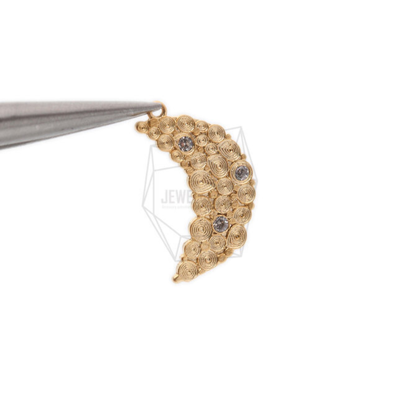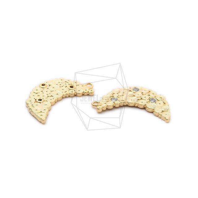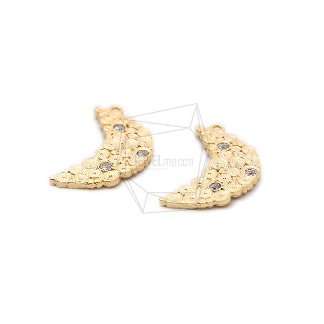 PDT-2172-MG/2PCS/Cubic Zirconia Setting Cescent Pendant/13mm X 22mm/Matte Gold Plated over Brass,CZ