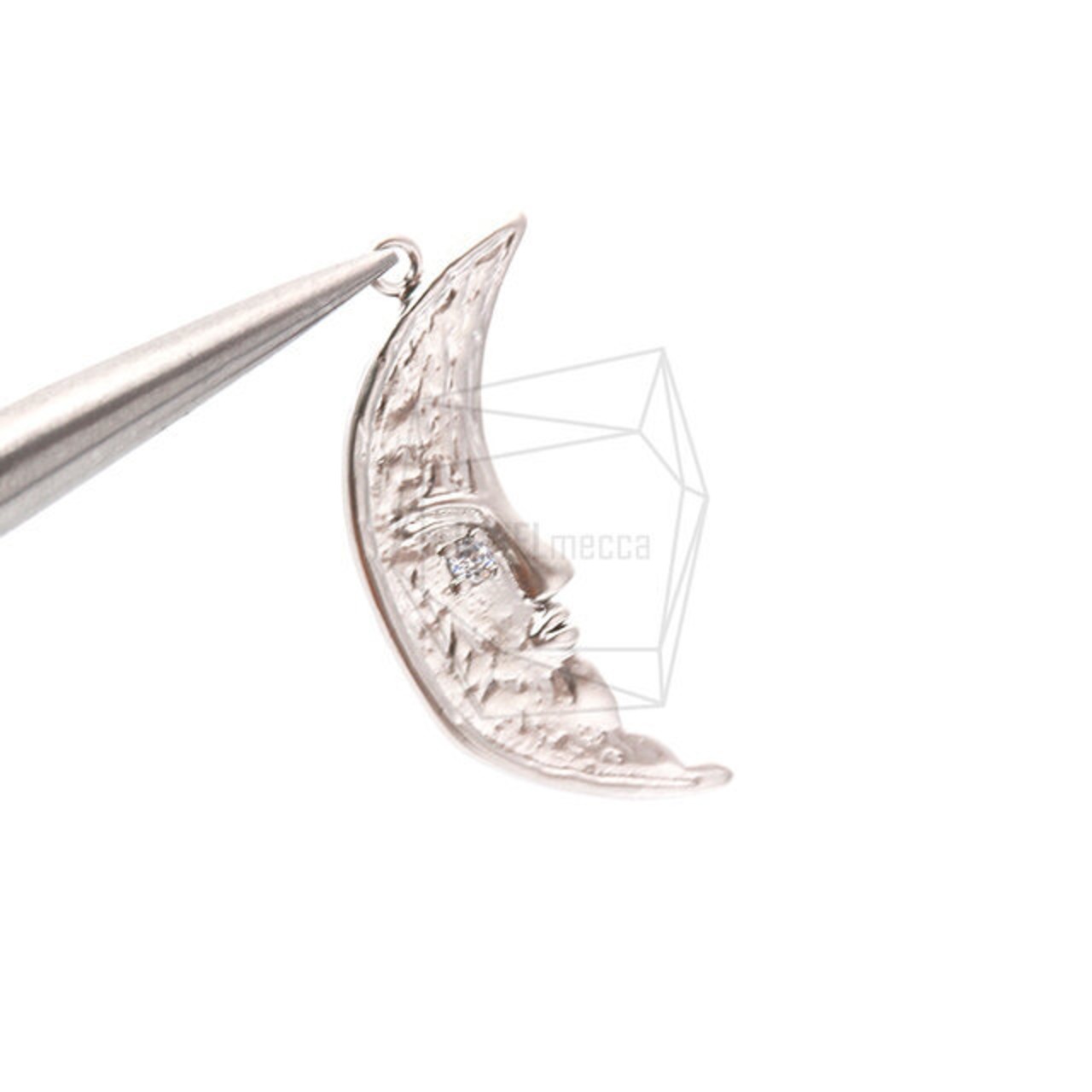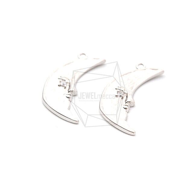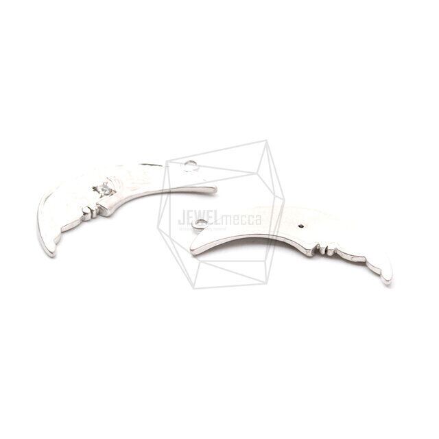 PDT-2173-MR/2Pcs-Cubic Zirconia Settings Moon Face Pendant/ 12mm X 28mm/matte Rhodium Plated over Brass