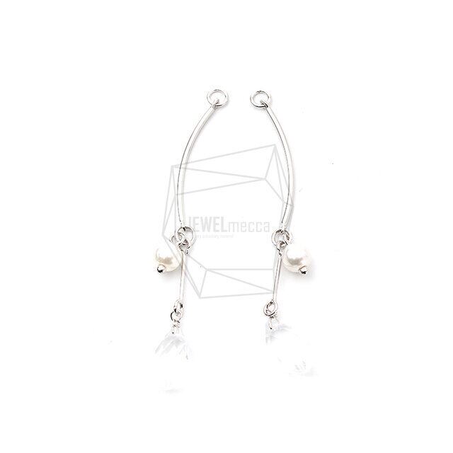 ERG-1197-R/2PCS/Pearl bar Earing Charm/8mm X55mm/Rhodium Plated Over Brass,Imitation pearl,Acryl