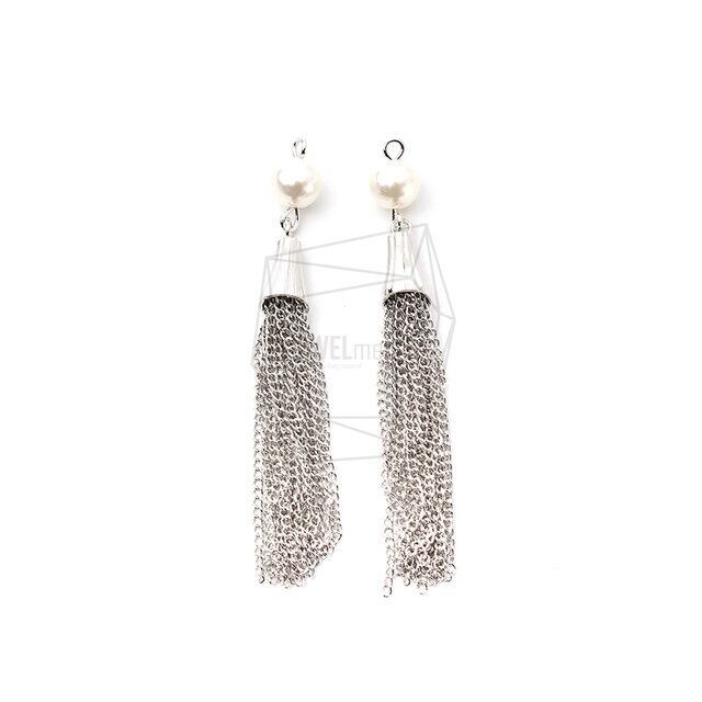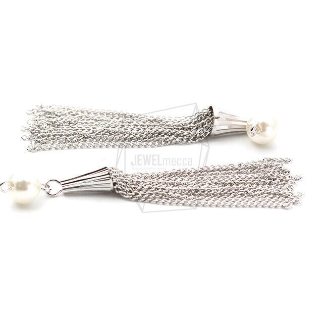 ERG-1199-R/2pcs/Big Tassel Charm/10mm x 70mm/Rhodium Plated Over Brass.Imitation pearl