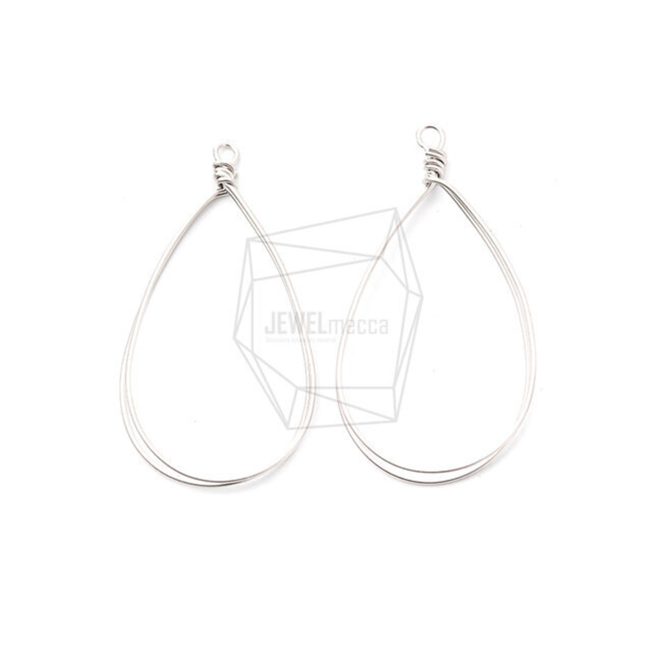 PDT-2174-MR/2pcs/Double Tear Drop Pendant/30mm x 53mm/Matte Rhodium Plated Over Brass
