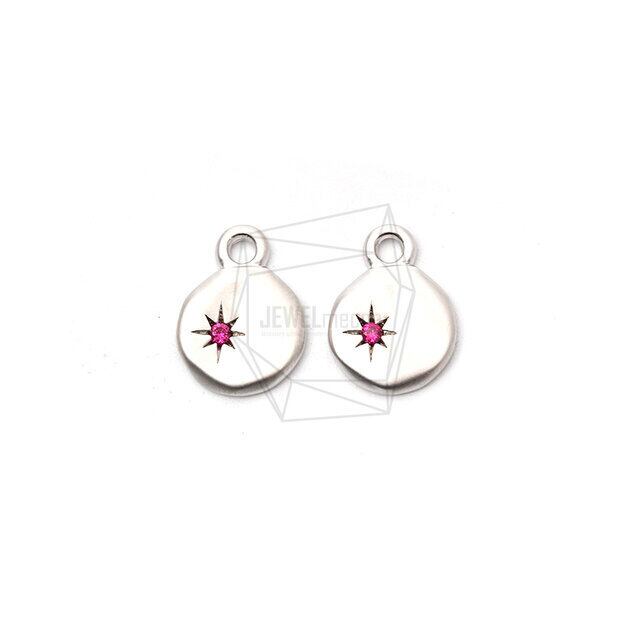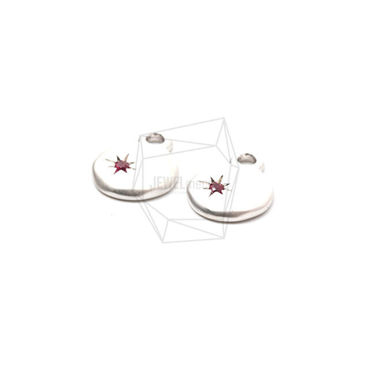 PDT-2175-MR/2PCS/Hammered Round Pendant/12mm x 16mm/Matte Rhodium Plated Over Brass,CZ