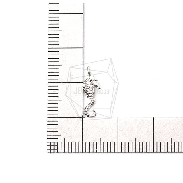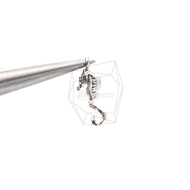 PDT-2182-MR/2PCS/Hippocampus Pendant/5mm X 15mm/Matte Rhodium Plated Over Brass
