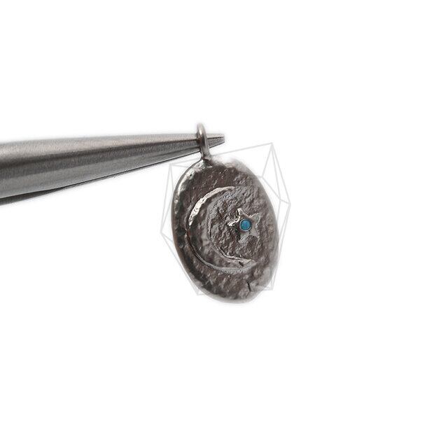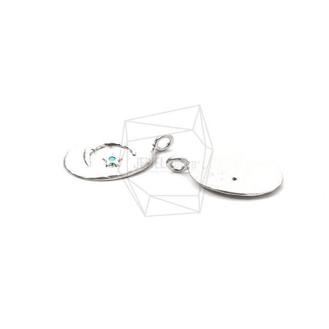 PDT-2185-MR/2PCS/Oval Crescent Star Pendant/9mm X 17mm/Matte Rhodium Plated Over Brass