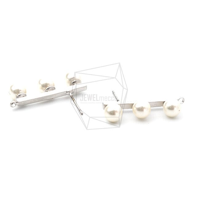 ERG-1217-MR/2PCS/Bar Pearl Post Earring/5mm X 28mm/Matte Rhodium Plated Over Brass,Titanium Post,Imitation pearl