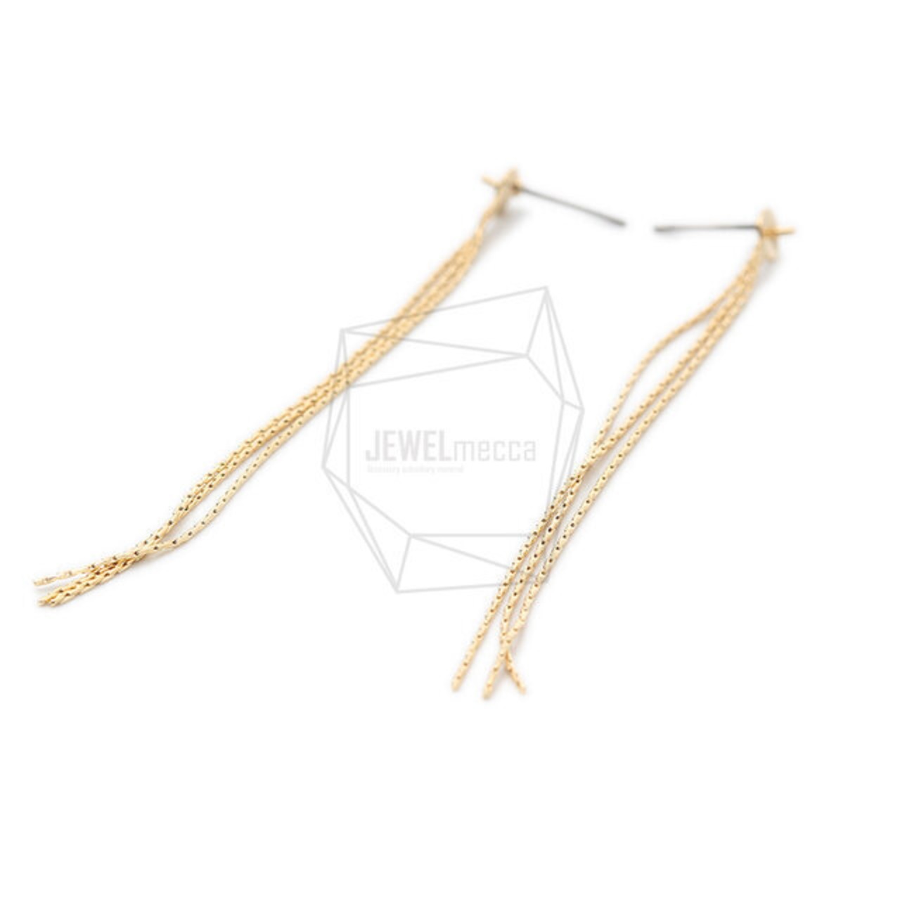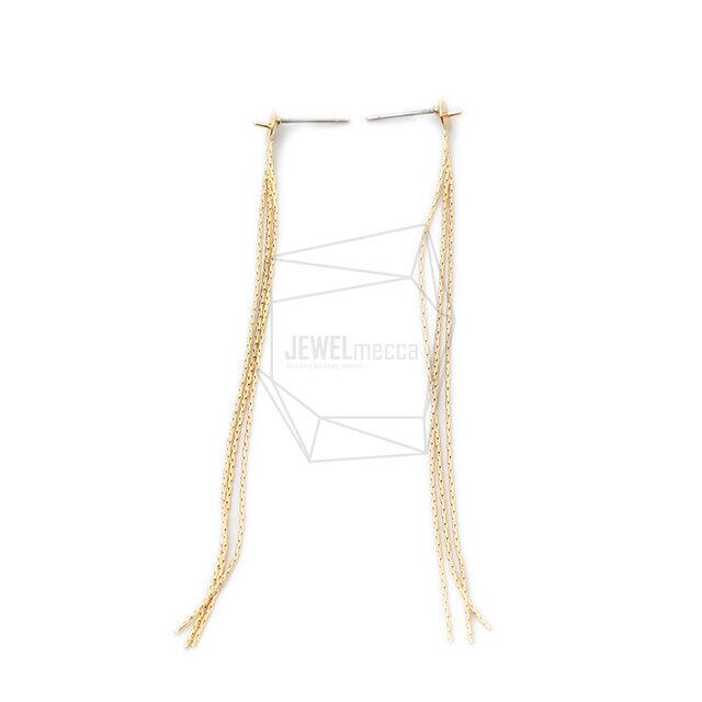 ERG-1218-G/2PCS/Chain tassel Post Earring/3mm X 83mm/Gold Plated over Brass,Stainless Post