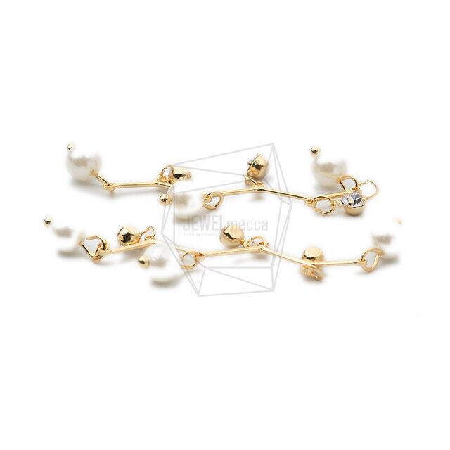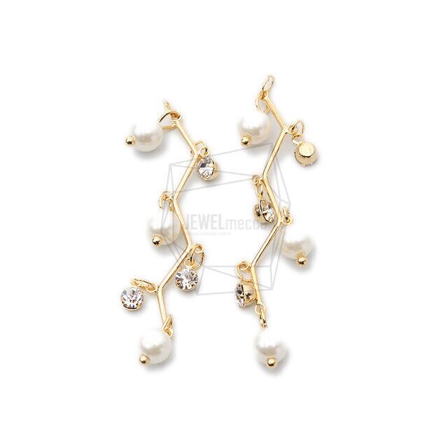 ERG-1219-G/2PCS/Zigzag Pearl and Glass Earring Charm/13mm X 50mm/Gold Plated Over Brass,Imitation Pearl,Glass