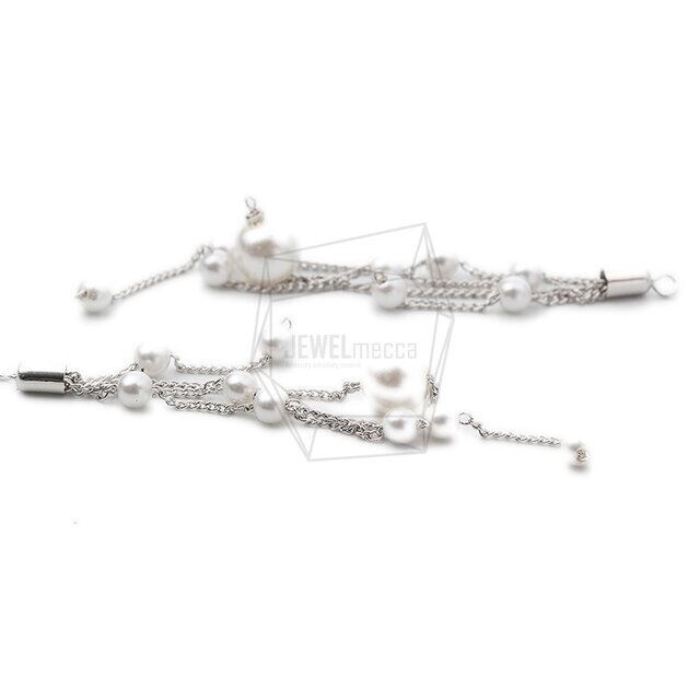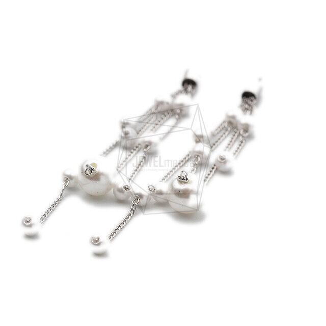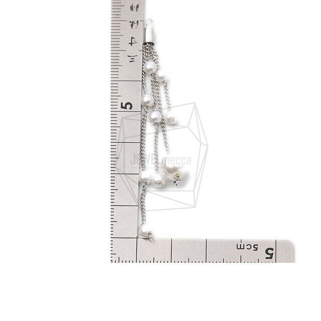 ERG-1221-R/2PCS/Pearl Tassel Earring Charm/10mm X 70mm/Rhodium Plated Over Brass,Imitation Pearl