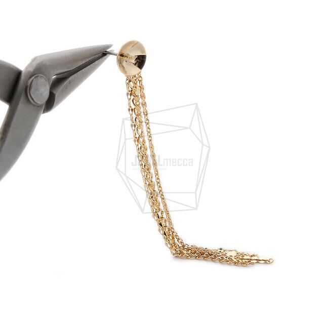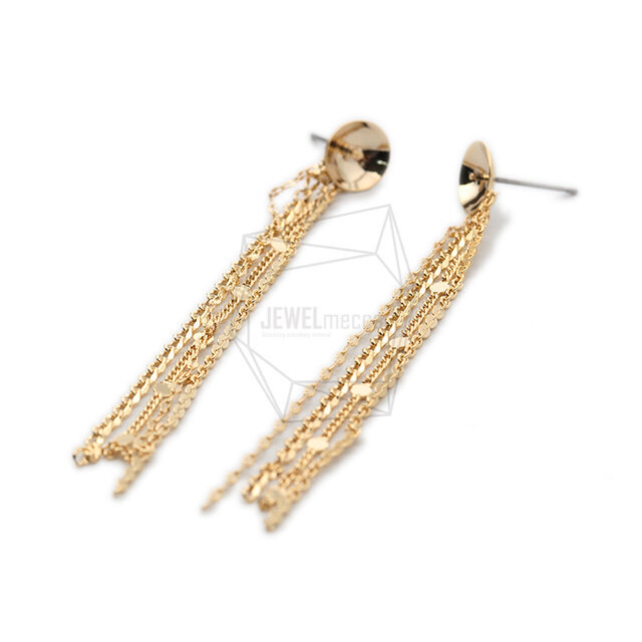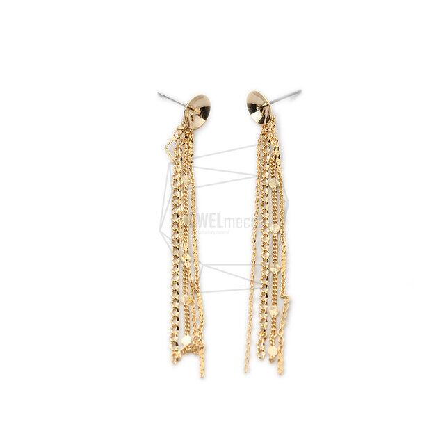 ERG-1223-G/2PCS/Chain tassel Post Earring/8mm X 70mm/Gold Plated over Brass,Stainless Post
