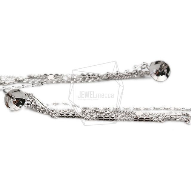 ERG-1223-R/2PCS/Chain tassel Post Earring/8mm X 70mm/Rhodium Plated over Brass,Stainless Post