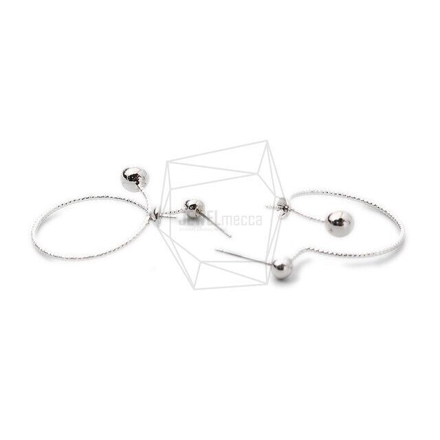 ERG-1226-R/2PCS/Round ball Post Earring/ 20mm X 30mm/Rhodium Plated over Brass,Stainless Post
