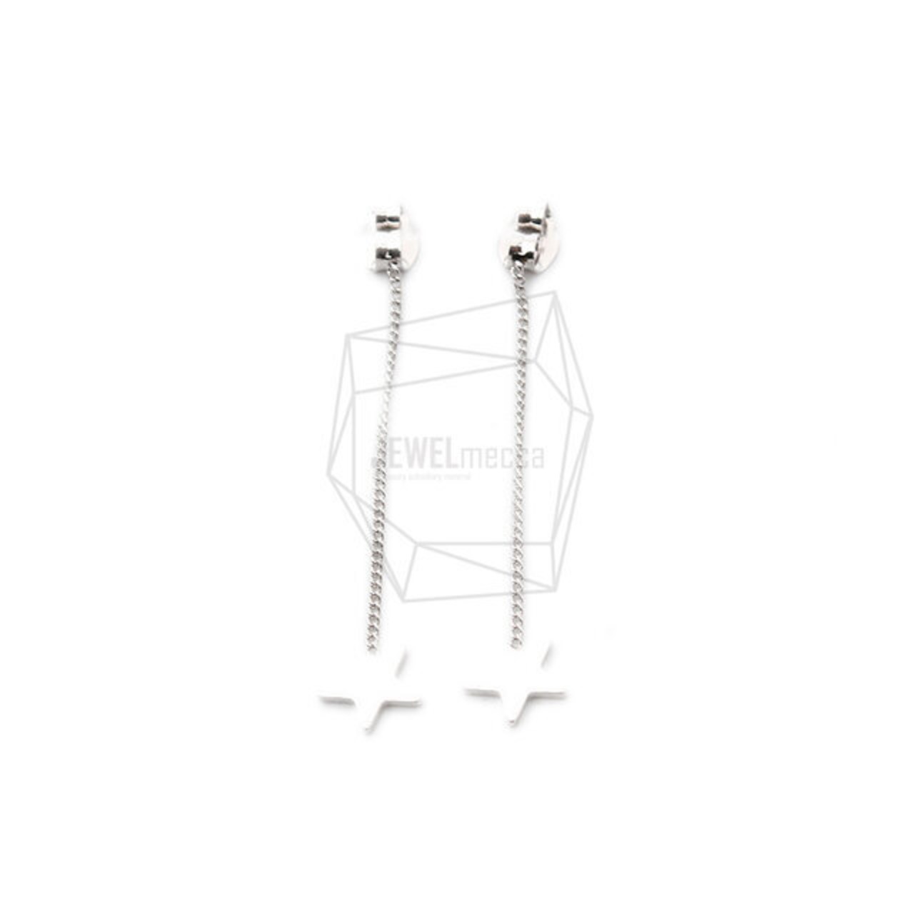 ERG-1227-R/4PCS/Chain Star Ear clutch/Earring Backs/8mm x 46mm/Rhodium Plated Over Brass