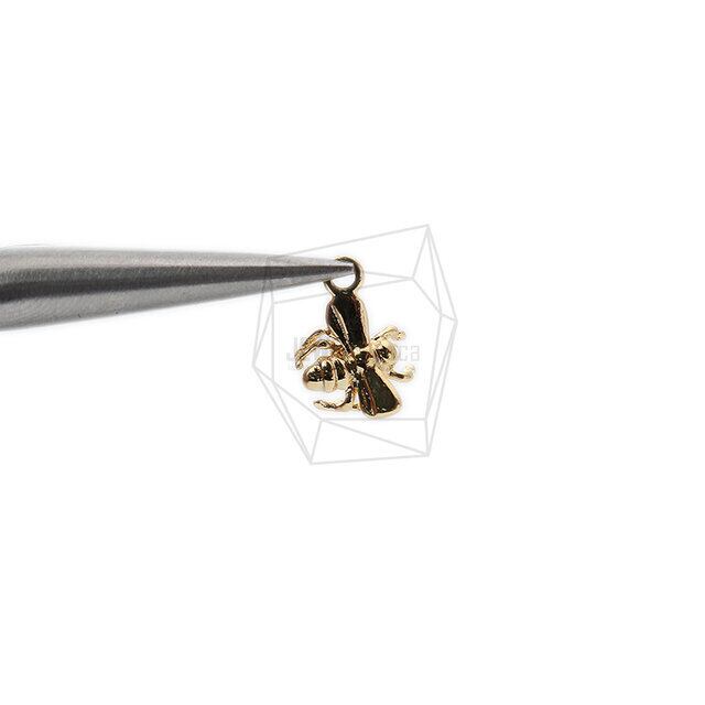 PDT-2186-G/2PCS/Honey Bee Pendant/8mm x 11mm/Gold Plated Over Brass