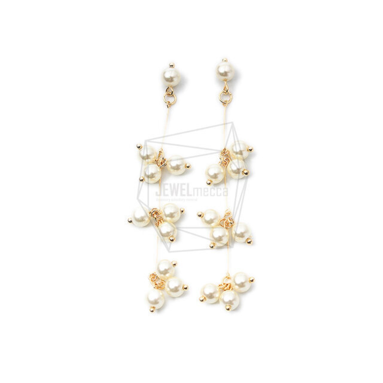 ERG-1239-G/2PCS/Pearl Tassel Earring Charm/16mm X 78mm/Gold Plated Over Brass,Imitation Pearl