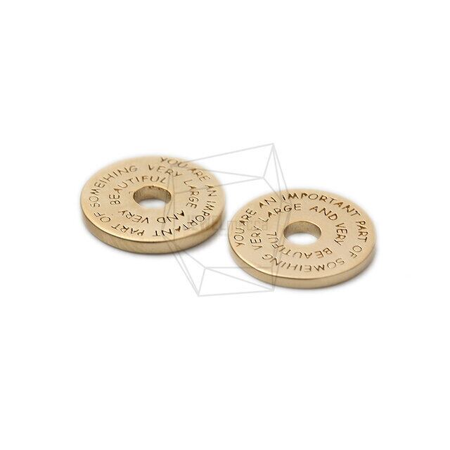 PDT-2193-MG/2PCS/Stamping Coin Pendant/15mm x 15mm/Matte Gold Plated Over Brass