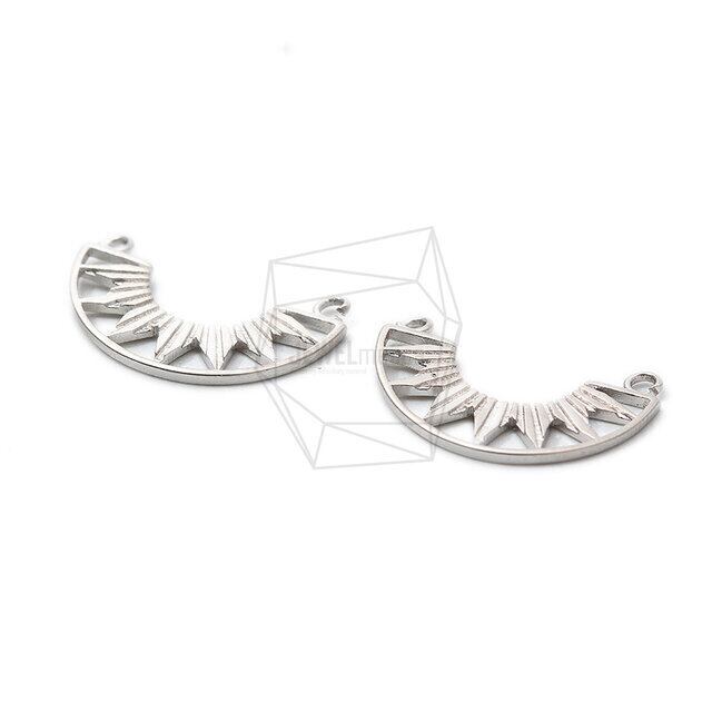 PDT-2197-MR/2PCS/Half Sun Pendant/12mm x 20mm/Matte Rhodium Plated over Brass