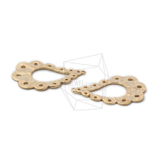 PDT-2198-MG/2PCS/Hammered WaterDrop Pendant/17mm X 25mm/Matte Gold Plated Over Brass