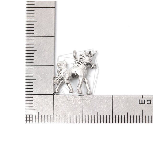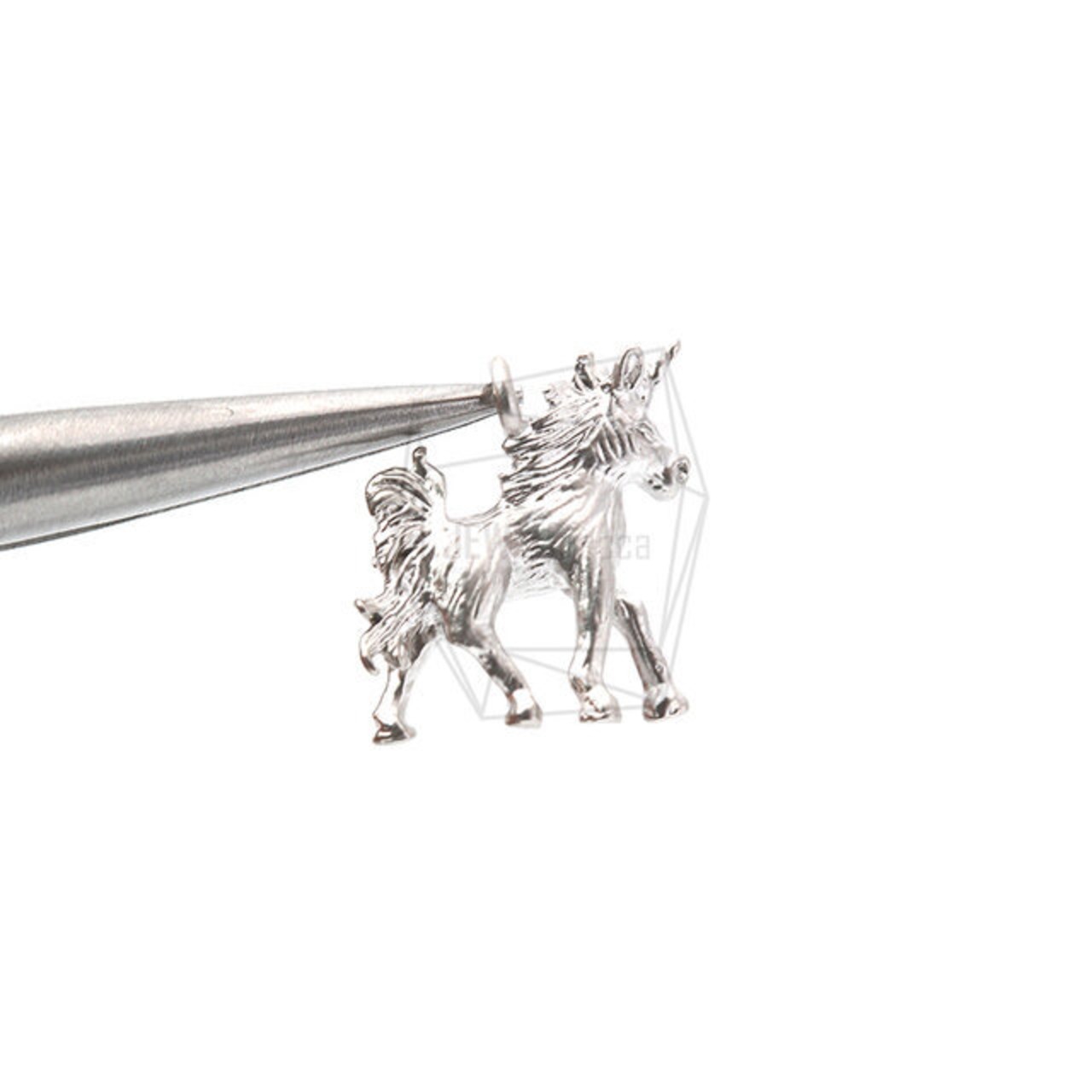 PDT-2202-MR/2PCS/Tiny Unicorn Pendant/15mm X 15mm/Matte Rhodium Plated Over Brass