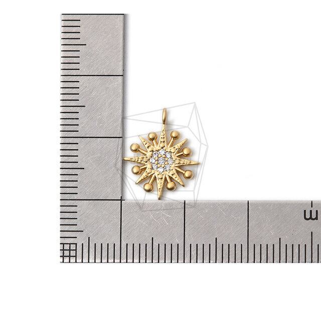PDT-2203-MG/2PCS/Cubic Sun Pendant/13mm X 15mm/Matte Gold Plated Over Brass,Cubic Zirconia
