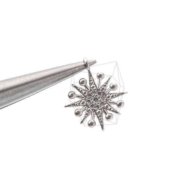 PDT-2203-MR/2PCS/Cubic Sun Pendant/13mm X 15mm/Matte Rhodium Plated Over Brass,Cubic Zirconia