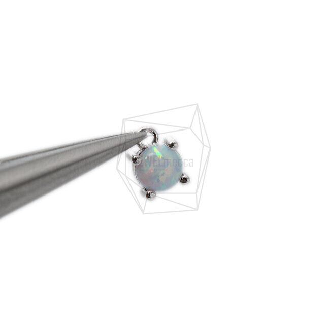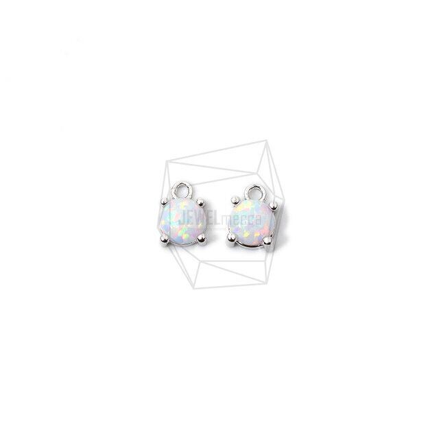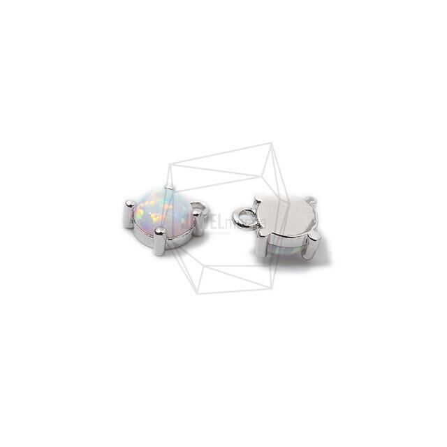 PDT-2214-R/2PCS/Synthetic opal Pendant/6mm X 7mm/Rhodium Plated Over Brass