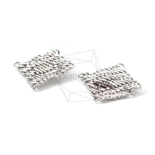 ERG-1247-R/2PCS/Mesh Square Pendant/25mm X 25mm/Rhodium Plated Over Brass