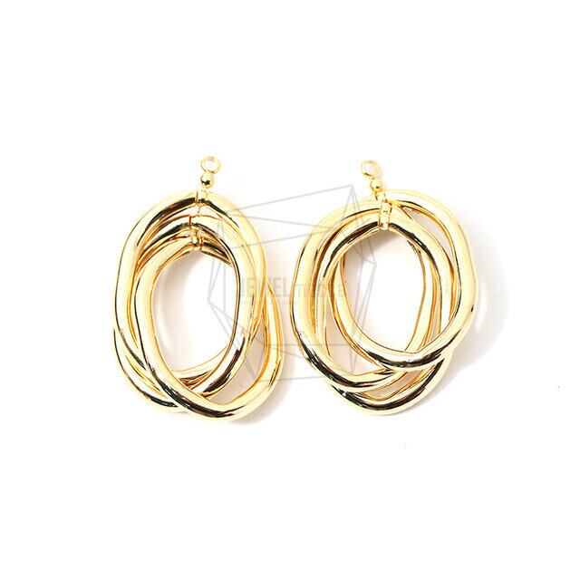 ERG-1248-G/2PCS/Triple Circle Link Earring Charm/24mm X 35mm/Gold Plated Over Brass