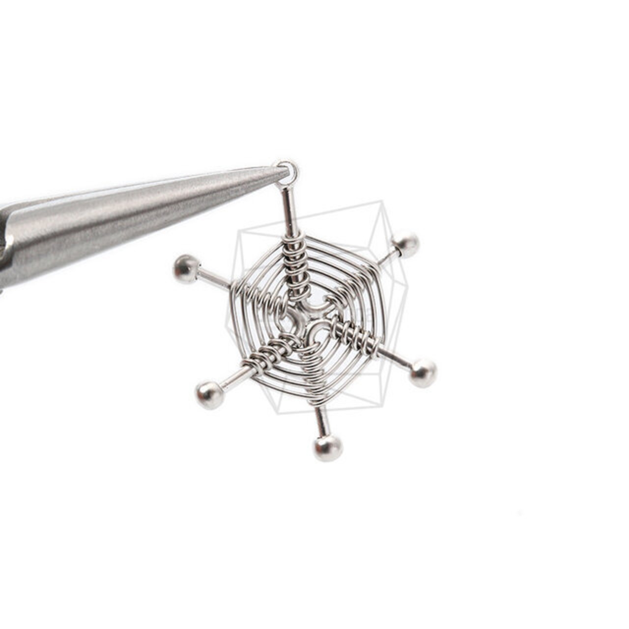 PDT-1250-MR/2PCS/Cobweb Pendant/Spider's web/20mm x 24mm/Matte Rhodium Plated over Brass