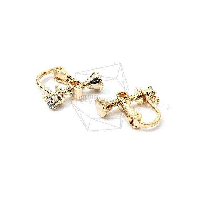 ERG-1251-G/4pcs/ Non-Pierced Ears-Clip-on Earrings /13mm x 16mm/Gold Plated Over Brass,Cubic