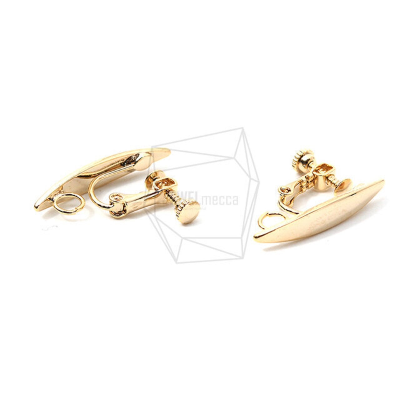 ERG-1252-G/2PCS/Leaf Texture Clip-on Earrings/4mm X 23mm/Gold Plated over Brass