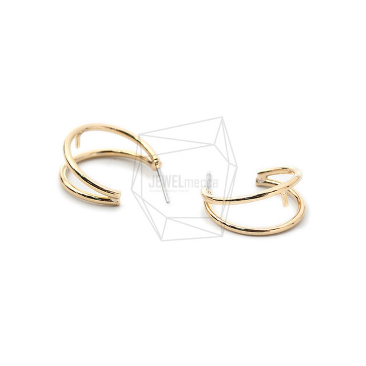 ERG-1257-G/2PCS/Double Round Post Earring/9mm X 18mm/Gold Plated Over Brass,Nickel free post